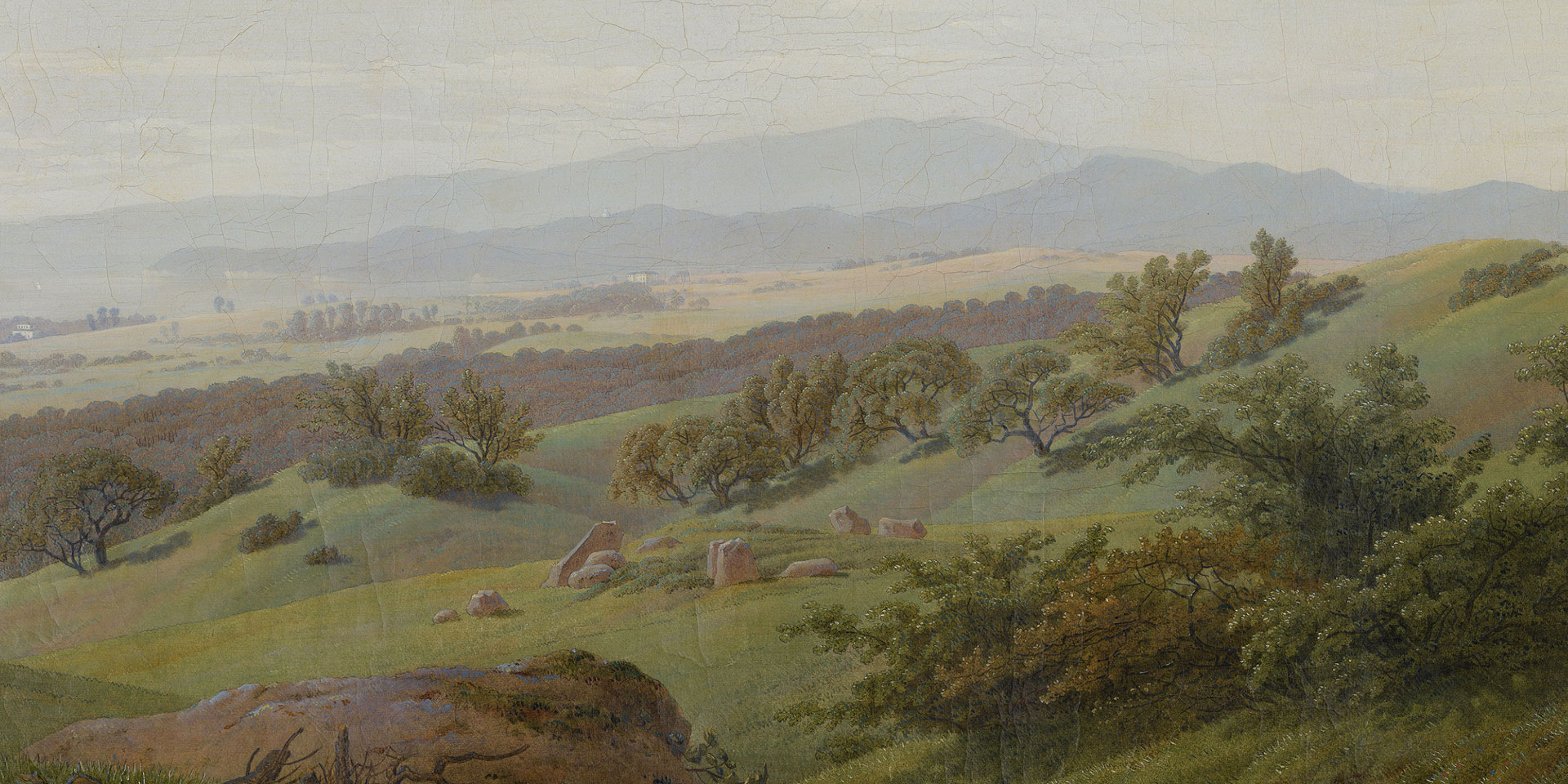 Ein neues Exponat der Online-Datenbank ist das Gemälde »Böhmische Landschaft mit einem See« des 1774 in Greifswald geborenen Malers Caspar David Friedrich († 1840). Er zählt zu den bedeutendsten Künstlern der deutschen Frühromantik und fertigte das Gemälde vermutlich um 1810 bei seinen Reisen durch Nordböhmen an.